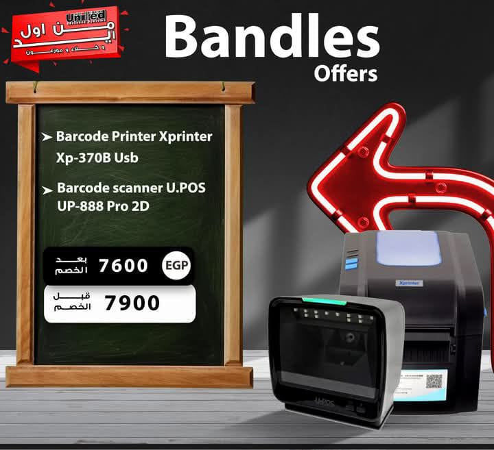:طابعة باركود وفواتير 2*1 حرارية + قارئ أكواد